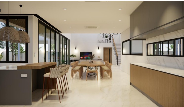The house is designed to provide comfortable living space in both internal and external areas for families who are looking for a spacious and comfortable space for their home. Full function of a modern house with a high ceiling and solid structure. Located in a gated community whihc is close to Nai Harn Beach, only 1 km away having a nice sea breeze all year round. The villa has a beautiful mountain view and a peaceful project environment. Perfect for both private residence and rental.