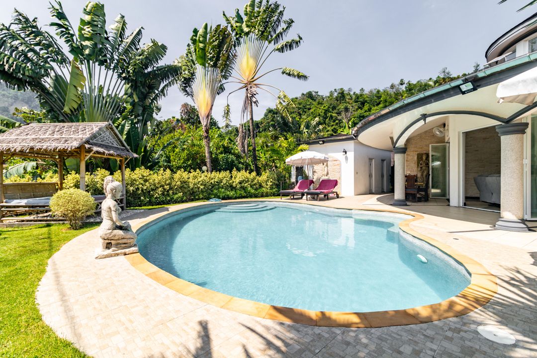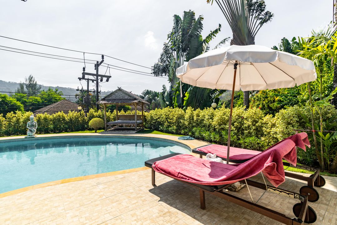 With starry night skies and dramatic clouds during the daytime, Phuket Pool Villa Lotus is your warm and relaxing oasis of tranquility. Your romantic luxury villa is going to be a different experience from the second you step out of the carport, climb the few steps, and see it for the first time. Your first clue on how different it just might be: the palm trees, flowers, and the grass yard!