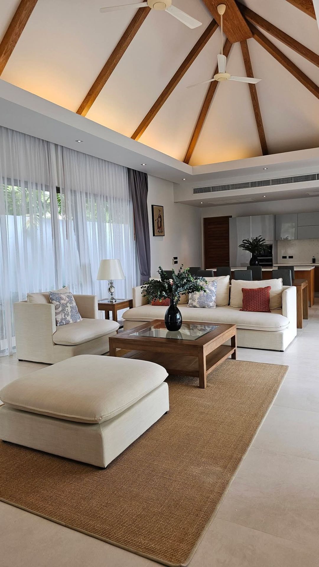 This exquisite 4-bedroom, 4-bathroom pool villa embodies refined island living, featuring beautifully appointed interiors, seamless indoor-outdoor spaces, and a serene private pool surrounded by lush greenery. The design blends modern comfort with natural ideal for family living or a luxurious tropical