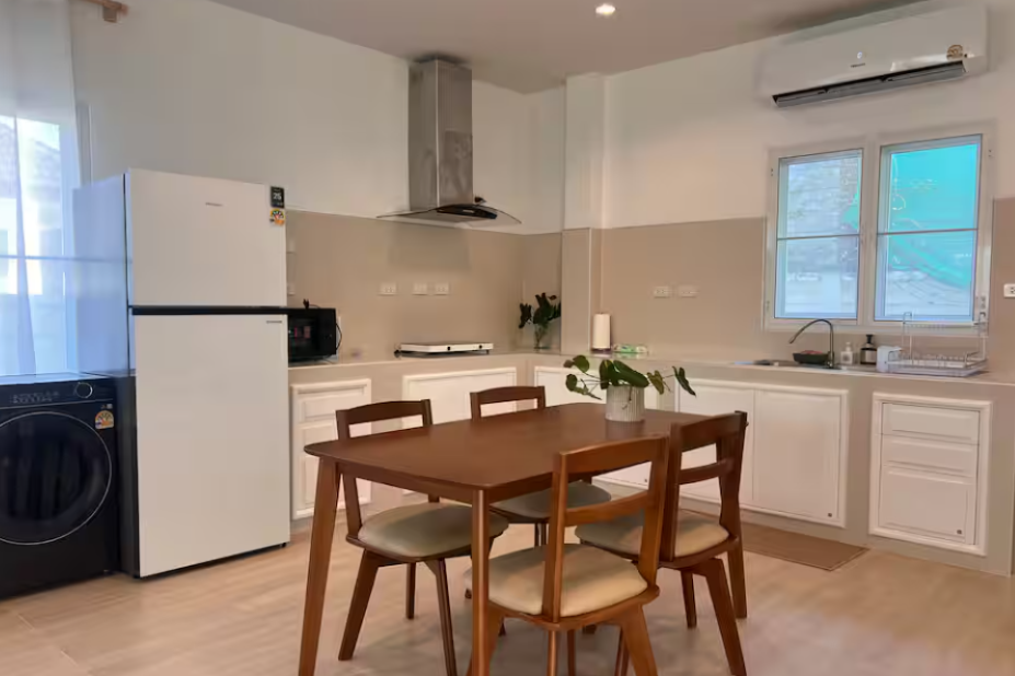 Experience serene living in this spacious 2-bedroom, 2-bathroom private home located in the heart of Khuekkhak, Phang Nga. Perfectly designed for those seeking a long-term retreat, this residence offers a blend of comfort and convenience.