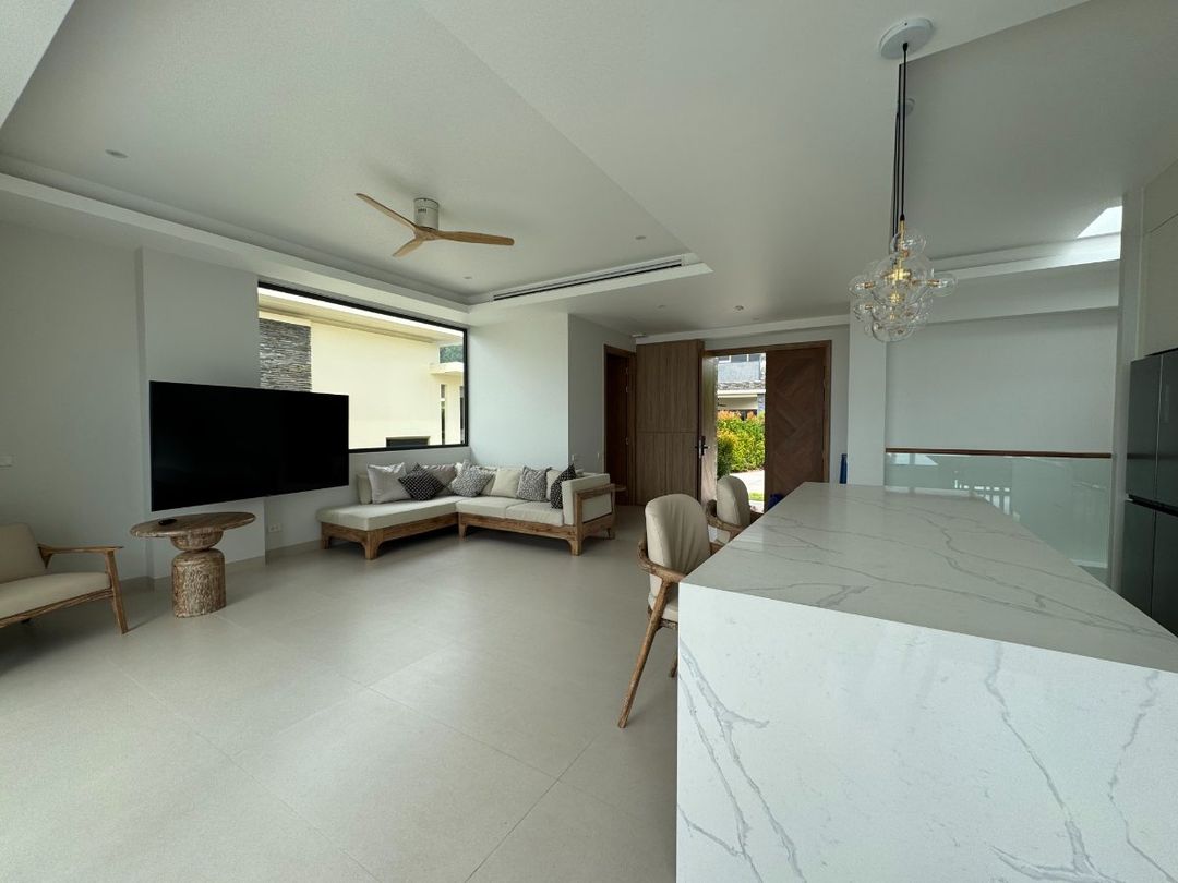 Set within a secure, well-managed gated community, this exceptional two-level villa offers an exquisite blend of modern elegance, functional design, and serene tropical living. Sitting on 320 sqm of land, the 400 sqm property is just 800 meters from the pristine sands of Nai Thon Beach, combining privacy, convenience, and breathtaking panoramic sea views.