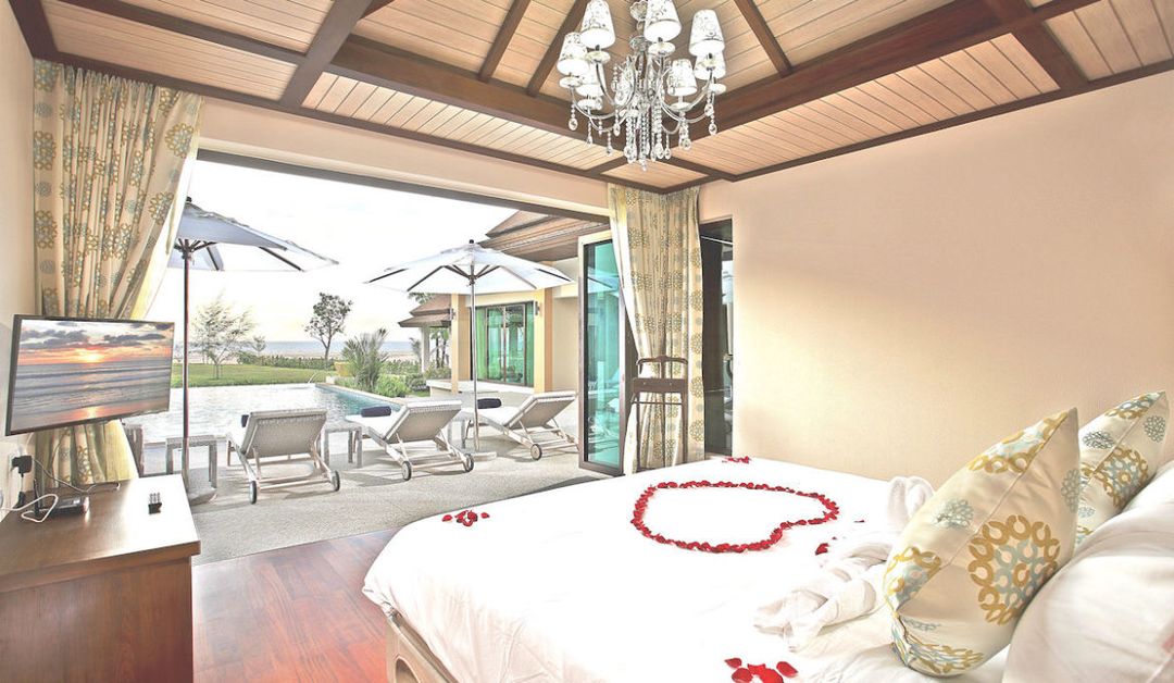 This honeymoon villa features a private swimming pool, an outdoor pavilion, ocean views with azure waters and a beautiful private beach of Koh Kho Khao, Thailand. It comes with 1 bedroom fitted with a king-sized bed and its own private bathroom including a spa bath and a shower. It also has a flat-screen TV with Netflix and Amazon Prime Video available, as well a safety deposit box in the bedroom. The kitchen is equipped with an electric stove, a dishwasher and a refrigerator, which you can fill from the local Khao Lak markets. This private villa with private pool is most suitable for honeymoon, undisturbed couples‘ vacation in Thailand and for perfect relaxation in luxury solitude far from busy and noisy Phuket.
