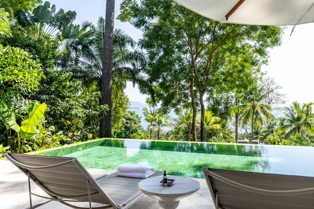 Nestled within 2,105 square metres of lush tropical gardens, this exquisite two-bedroom villa offers a rare sense of seclusion, with uninterrupted views stretching across the Andaman Sea and sunsets that wash the horizon in gold and crimson.
